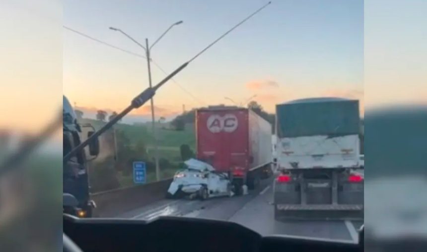 O acidente aconteceu no final da madrugada na faixa da esquerda, no trecho próximo ao bairro São Marcos, sentido Santa Catarina. De acordo com informações preliminares das equipes de socorro, cinco pessoas foram identificadas na ocorrência, sendo três mortes confirmadas ainda no local.