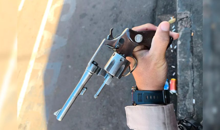 Os militares realizaram buscas no interior do comércio e localizaram o revólver escondido dentro de uma caixa de papelão, junto a garrafas vazias. A arma estava carregada com quatro munições, sendo duas intactas e duas que falharam no disparo.