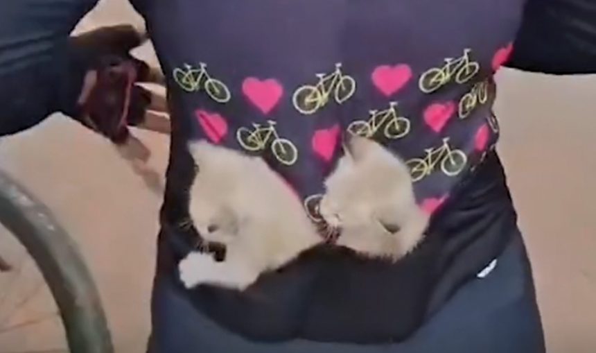 Sem hesitar, a ciclista decidiu agir e improvisou uma solução para retirar os animais do local. Ela colocou os gatinhos dentro da própria camisa e seguiu até sua casa.